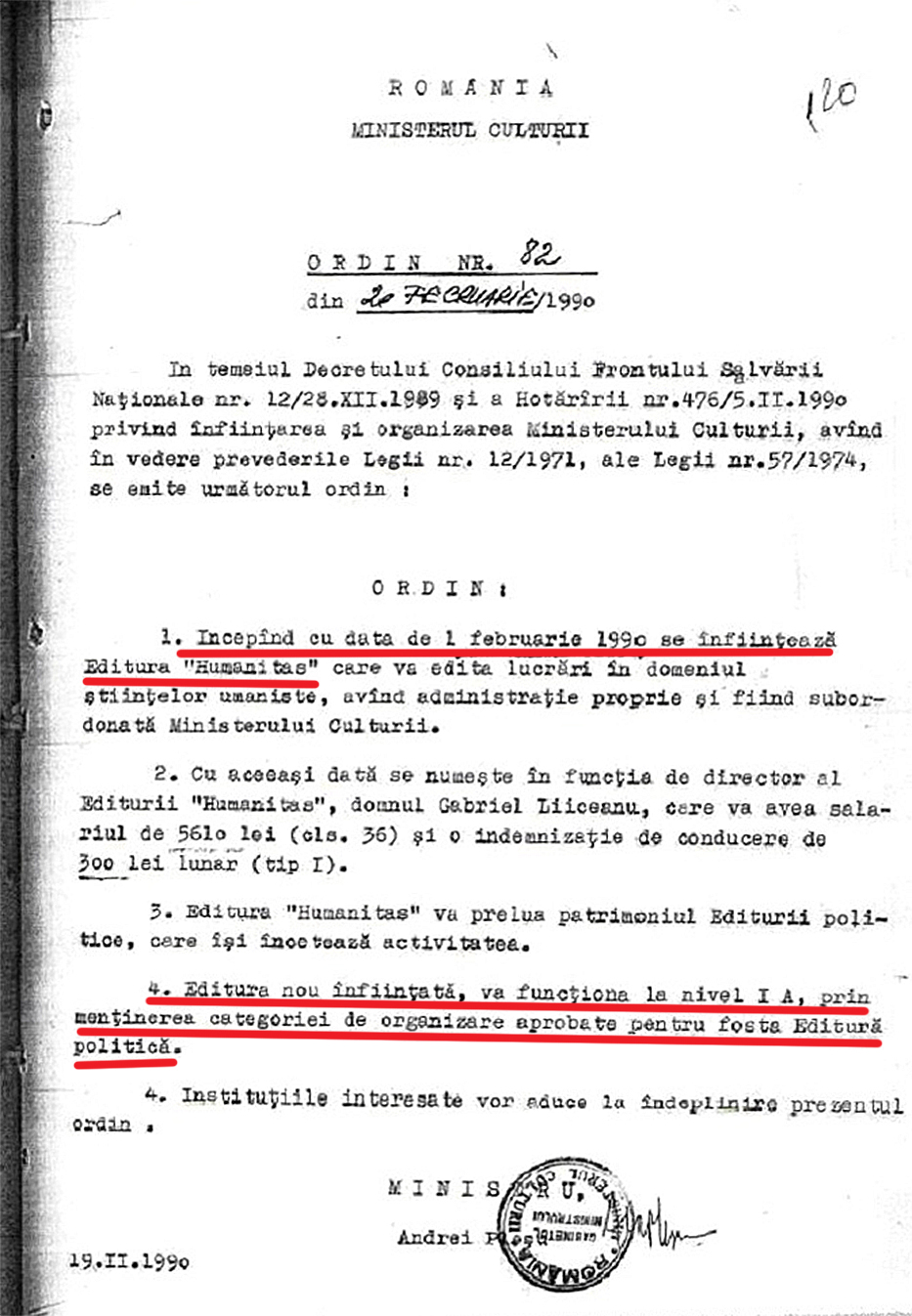 Tot imediat după „revoluție”, Gabriel Liiceanu a luat cu japca Editura Politică, pe care a transformat-o în editura „Humanitas”, grație prietenului său devenit ministrul Culturii, tetea Andrei Pleșu. Iată și dovada mai jos:
