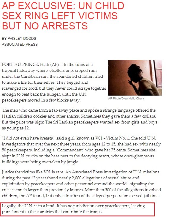 ONU a fost implicat în nenumărate scandaluri de trafic uman și pedofilie până acum, această organizație globalistă este un paravan penrtu activități criminale.