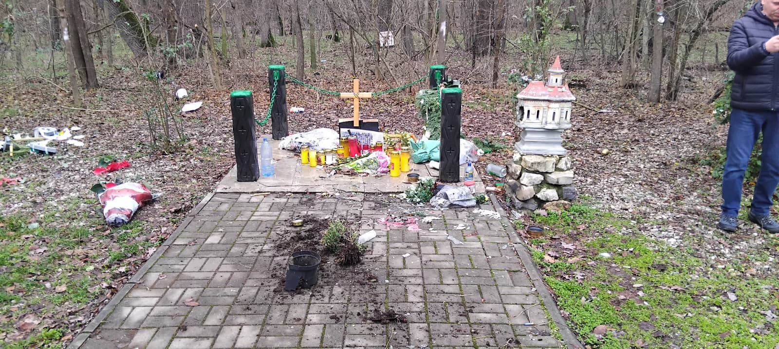 Crucea Provizorie de la Tâncăbești a fost distrusă și locul a fost devastat