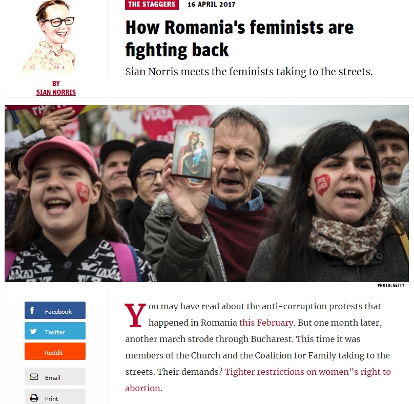Din presa internațională aflăm că feministele de la Feminism România au organizat marșul pro avort, împotriva Coaliției pentru Familie.