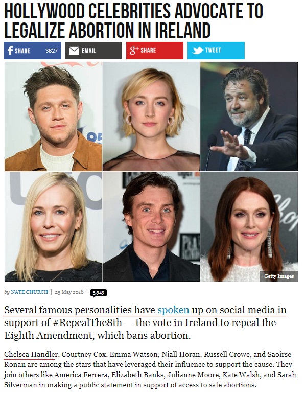 Desigur celebritățile de la Hollywood s-au implicat foarte tare în problema avortului din Irlanda.