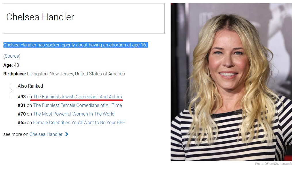 O grămada de celebrități din SUA, susțin avortul și îl promovează ca fiind ceva bun. Desigur multe dintre aceste celebrități sunt fie evrei, fie au fost sau sunt căsătorite cu evrei.