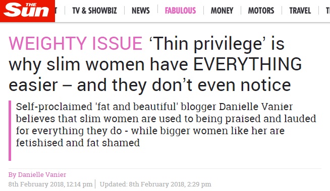 S-a mers chiar mai departe, oamenii slabi au început să fie atacați și să fie criticați pentru că sunt privilegiați, iar bărbații care refuză avansurile grăsanelor sunt considerați bigoți și misogini.