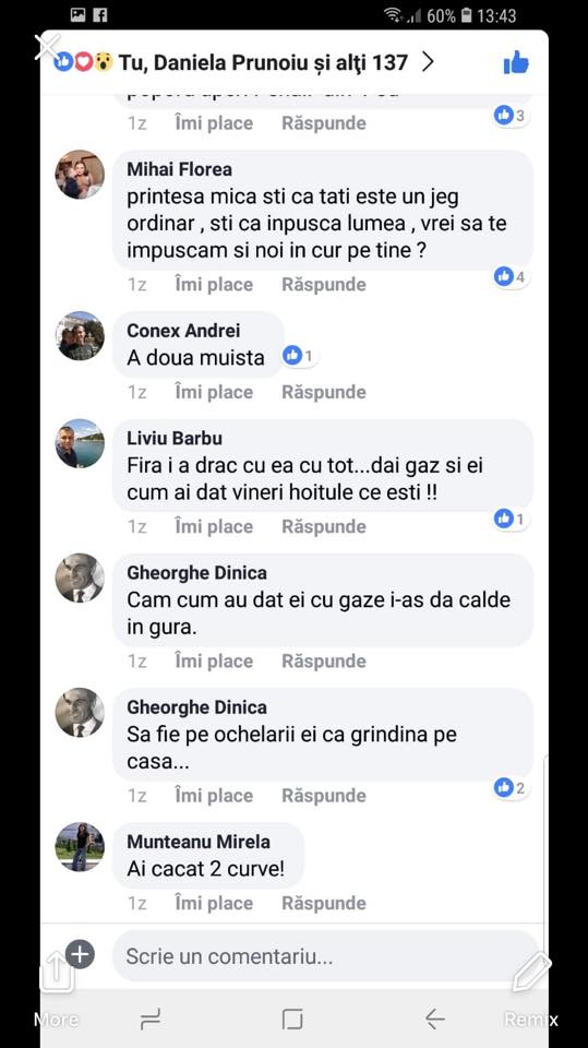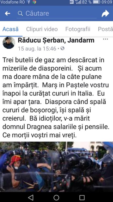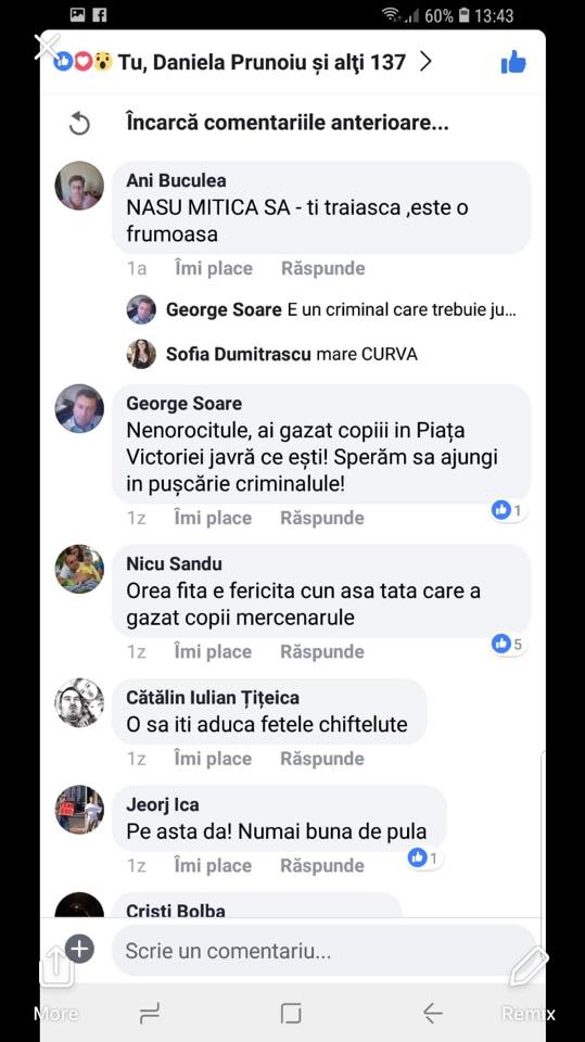 Uite ce mesaje drăgăstoase trimit unui jandarm și fiicei lui, jandarm care nici măcar nu a fost în Piața Victoriei!