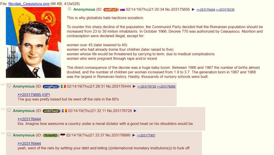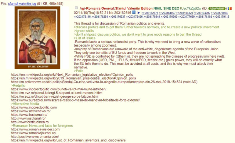 Exemplul #2: Există un thread pe /pol/ 4chan numit /rg/ – Romania General. Aici se adună toți românii de pe /pol/ pentru a discuta starea actuală a României. Pastebin-ul aici cu următoarele link-uri: https://pastebin.com/DftcaSgf De ce este așa de importantă? Deoarece Vănătorul de Comuniști i-a aruncat de pe prăpastie pe toți românii și străinii care ne ajută cu thread-urile, numindu-i spionii Rusiei.