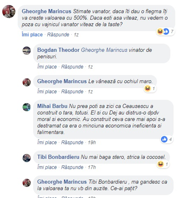Vânătorul de Comuniști l-a atacat pe Gheorghe Marincus, un activist de dreapta deoarece a numit adevărul despre anumiți politicieni. A îndrăznit să spună că Ceaușescu a clădit o țară. Într-un fel are dreptate. Ceaușescu chiar a construit o țară. Mai mult din cauza El*nei și a nebuniei s-a distrus totul. Dar Vânătorul de Comuniști nu vrea recunoască asta, astfel atacând-ul pe Marincus pentru vorba spusă.