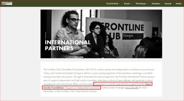 Asociația Frontline Club este finanțată printr-o bursă oferită de Fundațiile pentru o Societate Deschisă, înființate de George Soroș. Raluca Feher, președintele organizației, este colaboratoare a revistei Vice și are un discurs violent anti-ortodox.