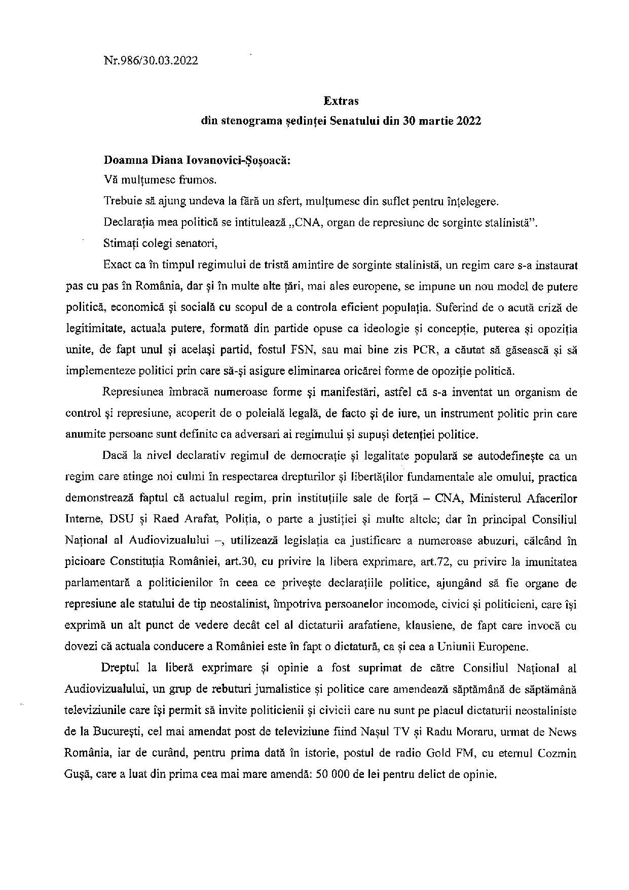 Declarație politică nr. 986/a din 30.3.2022