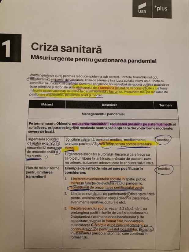 Măsurile urgente pentru gestionarea pandemiei ale lui Dacian Ciolos pot fi citite mai jos: