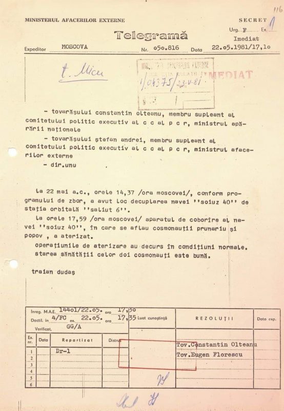 Pe 14 mai 1981, cosmonautul Dumitru Prunariu era primul român care zbura în spațiu. România devenea a 11-a țară care trimitea un om în spațiu.