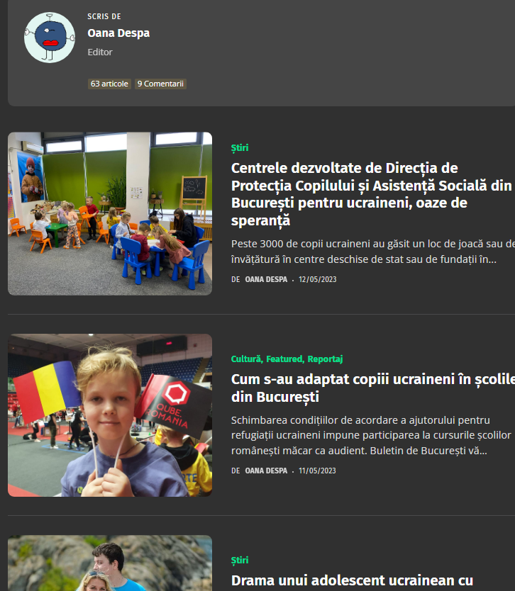 De asemenea a scris multiple articole propagandistice menite să sensibilizeze opinia publică cu privire la invazia refugiaților ucrainieni.