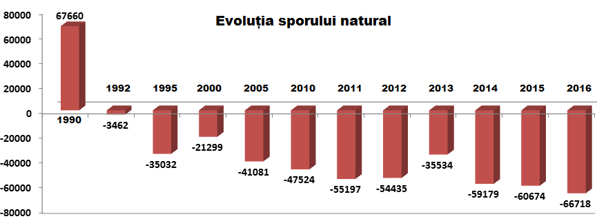 În februarie 2017, sporul natural negativ a fost de 9.693 de persoane.