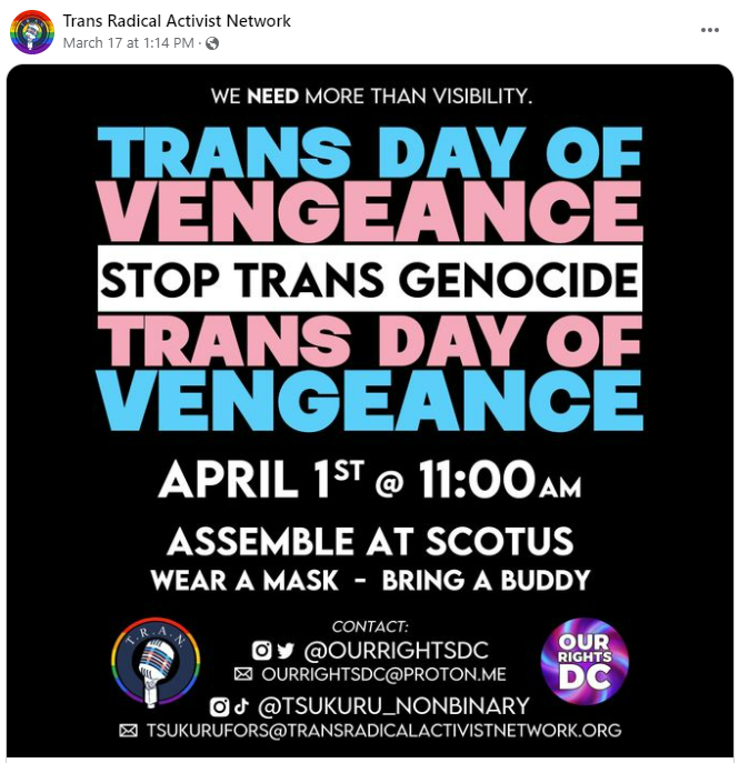 Aceștia au mai anunțat data de 1 Aprilie ca “Ziua trans a răzbunării”. Să ne așteptăm la un masacru?