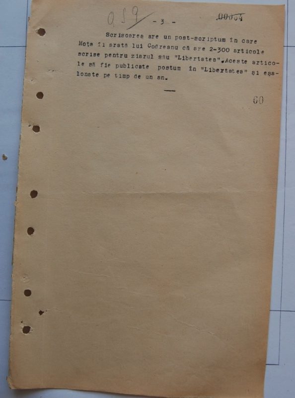 Cu concursul tau si lasând „Libertatii” sectorul operei ziaristice pe care o împlinea pâna acum în Legiune, – foaia e asigurata si familia mea are din ce trai. Te rog deci ajuta „Libertatii” sa traiasca.