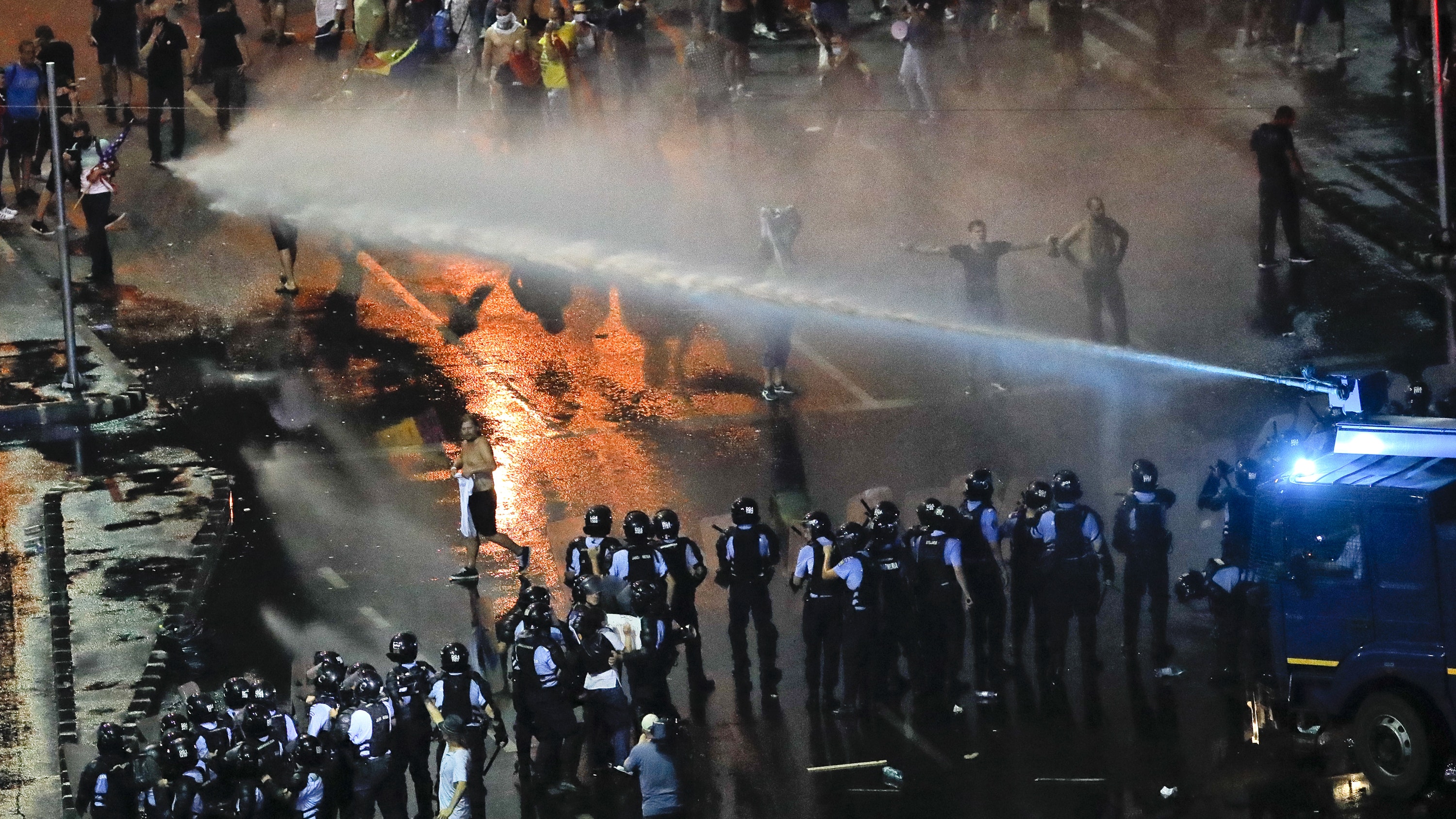 ASEDIUL a început în jurul orei 11, când forțele de ordine au declanșat operațiunea de dispersare a protestatarilor, folosind gaze lacrimogene și tunuri cu apă. Unii oameni au ajuns la chirurgie în urma leziunilor, iar televiziunile se întreceau în narative. Anarhiștii au ars tomberoane și copaci ornamentali, au desprins borduri și au început un război cu jandarmii care ne aduce aminte de protestele din 2012 (pentru cine a urmărit situația din acea vreme).