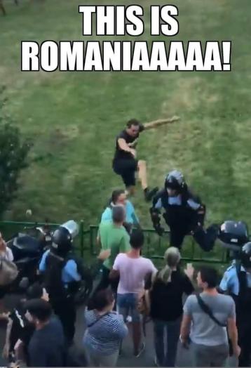 Același tip de intervenție în forță, disproporționată în raport cu manifestările majorității oamenilor (jandarmi vs pensionari în cazul protestelor anti-Băsescu) a avut loc în 2012 (fără gaze și apă atunci, că era iarnă), dar furia populară era inexistentă acu 6 ani și tinerii nu răspândeau comentarii pe internet împotriva represaliilor dictatoriale (decât puțini).