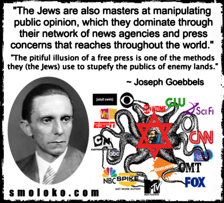 Modelul tuturor acestor patroni și oameni de mass-media evrei, care cenzurează informația și manipulează populația din întreaga lume, pare a fi fără îndoială Paul Joseph Goebbels, ministrul propagandei publice în timpul regimului nazist.