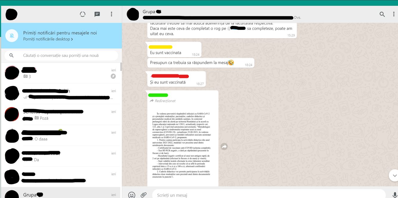 Sunt student la facultatea de medicină din constanța iar astăzi am primit acest mesaj pe grupul de whatsapp
