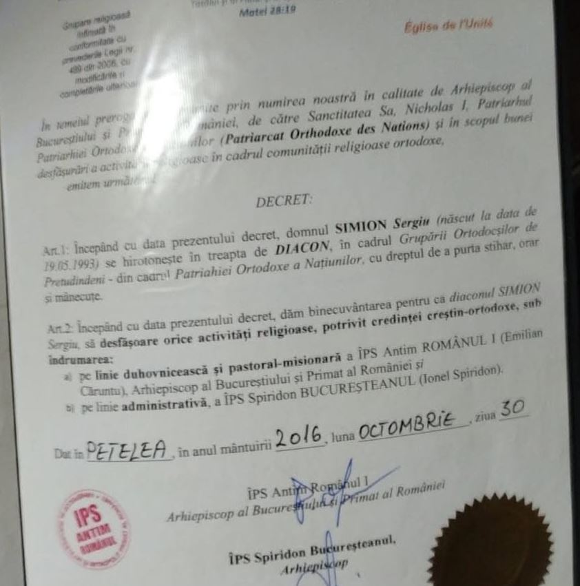 Mai mult, numitul Antim Românul I, autoproclamat ”Arhiepiscop al Bucureștiului și Mitropolit Primat al României”, care a oficiat așa-numita hirotonie a domnului Petre Roșca nu are succesiune apostolică, a fost hirotonit de către persoane auto-intitulate episcopi”, care nu fac parte din nicio Biserică Ortodoxă Autocefală recunoscută, fără respectarea prevederilor canonice ale Bisericii Ortodoxe și fără recunoaștere din partea unei Biserici Ortodoxe Autocefale. De aceea, nu numai că domnul Petre Roșca nu poate fi considerat episcop, dar nici gruparea din care face dânsul parte nu poate fi considerată Biserică.