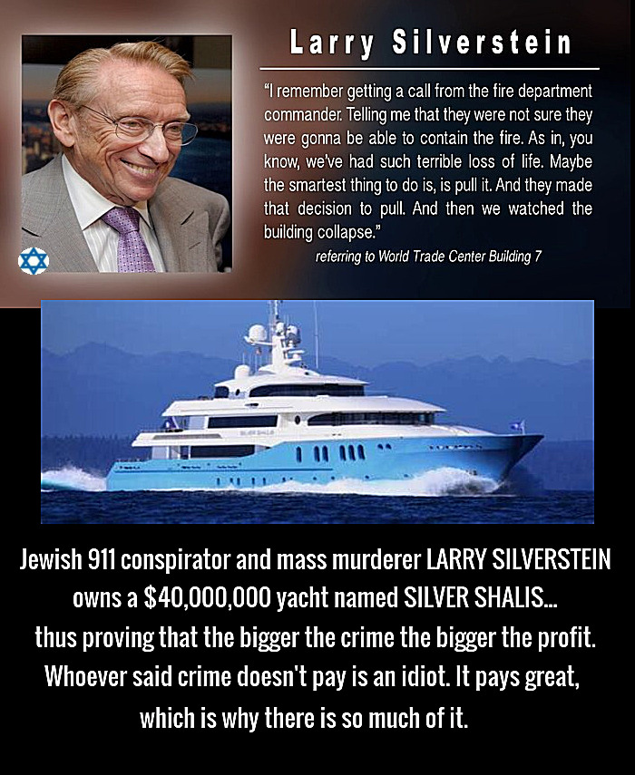 Larry nu mai trebuie să muncească nicio zi din viața sa, nici el, nici copiii lui, nici nepoții lui și probabil că nici strănepoții lui dacă până atunci nu vor fi deportați. Acum este mândrul proprietar al noului complex World Trade Center. S-a rezolvat pe viață după 11 septembrie, a făcut cinste poporului iudeu și ne-a reprezentat cu succes în lumea afacerilor. Acesta este geniul lui Larry. Felicitări, Larry! Ai meritat acele miliarde din plin, păcat că n-au fost șase!