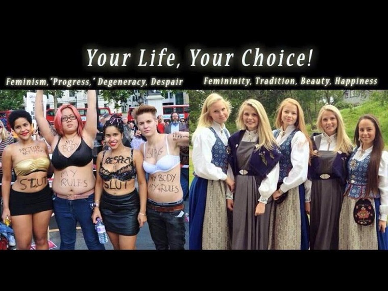 Vă spun, trăim într-o distopie post-marxistă acceptată prin îndobitocire generalizată și femeia eliberată pantalon-falus-țigară-tatuaj îi reprezintă chiar epicentrul.