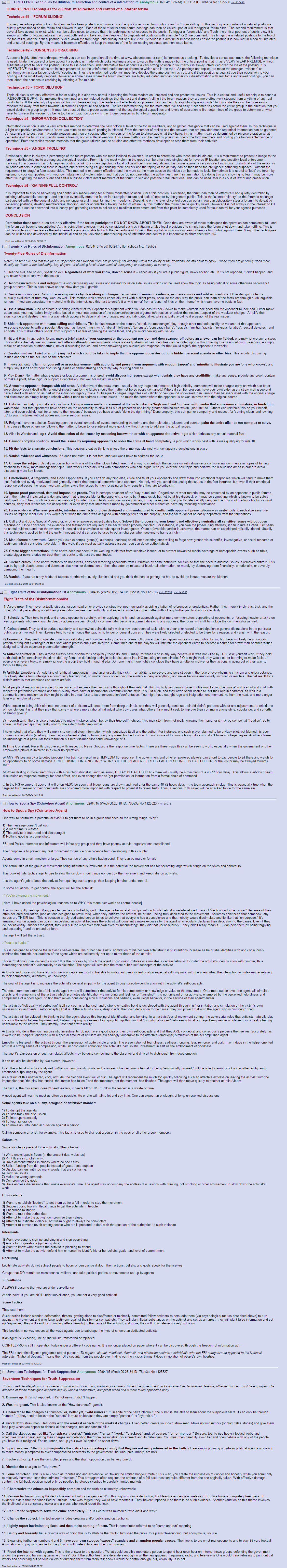 Iată niște tehnici de dezinformare. Din păcate nu sunt traduse în limba română, cine se oferă voluntar să o facă mi le poate trimite pe adresa redacției și voi urca o variantă românească.