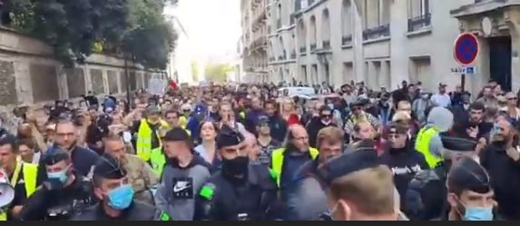 În Franța au ieșit peste 100.000 de oameni în stradă să protesteze împotriva restricțiilor demente pe care Macron le vrea impuse, cu cod QR pentru scanat la intrarea în baruri și terase, iar pentru lucrătorii din sistemul sanitar, vaccinare oblgiatorie.