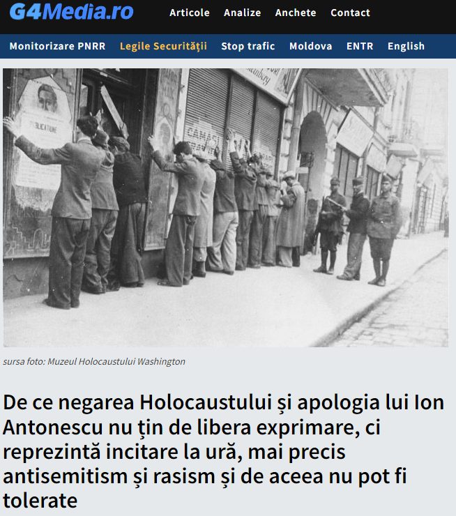 G4 media: “Opiniile despre holocaust nu reprezintă liberă exprimare”