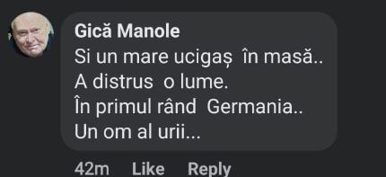 Foarte pe scurt, în primul rând pt că nu știu dacă îmi va fi lăsat comentariul. Nu este dl. Gică Manole primul care sugerează că Hitler, prin acțiunile sale, este greu de poziționat: a fost el cine a pretins sau doar un infiltrat? De unde această furie de a merge până la capăt aproape cu distrugerea poporului german? Da, acest destin poate fi asumat de către o castă de războinici, de către niște samurai, ca să dau un exemplu, dar poate fi impus unui popor să lupte până în pragul anihilării? Paranteză, istoria aproape că nu consemnează prin ce au trecut femeile germane după înfrângere, ca și populația supraviețuitoare. Precizez în plus că la noi dl profesor Corvin Lupu ridică la rândul dumnealui anumite semne de întrebare cu privire la acest personaj istoric.