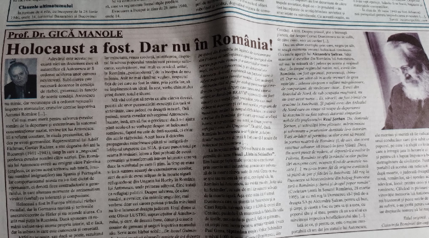 Aceste informații sunt publice, de aceea par halucinante afirmațiile lui Gică Manole din Certitudinea (nr.121) în care afirmă “holocaust a fost, dar nu în România” și de pe Facebook, unde îl bârfește/denigrează pe cancelarul Adolf Hitler, chiar de ziua lui.