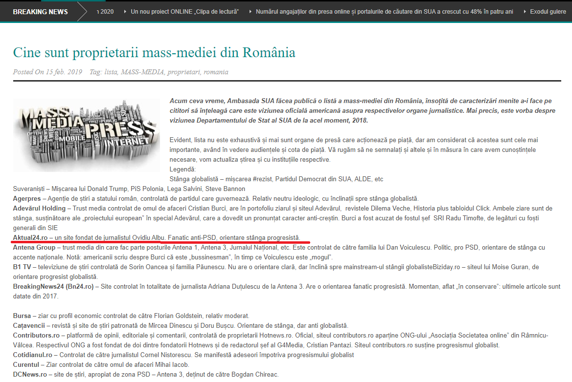“Portalul aktual24.ro este fondat de Ovidiu Albu, jurnalist cu peste 20 de ani de experienta in presa si comunicare. Ovidiu Albu a lucrat in televiziune, presa scrisa si presa online, fiind specializat pe “politic” si “investigatii”.