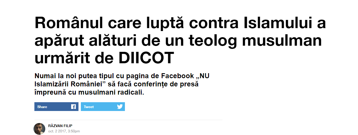 V.R: Şi dumnealui mi-a spus că dvs aţi fost prezent la o conferinţă de presă alături de Bari Nerdin, care este un cleric musulman şi care în 2011 a fost cerectat de DIICOT pentru acţiuni de radicalizare. şi mi se pare un pic ciudat, adică dvs spuneţi că acum protestaţi împotriva şi totuşi va ascoiati cu astfel de persoane în public.