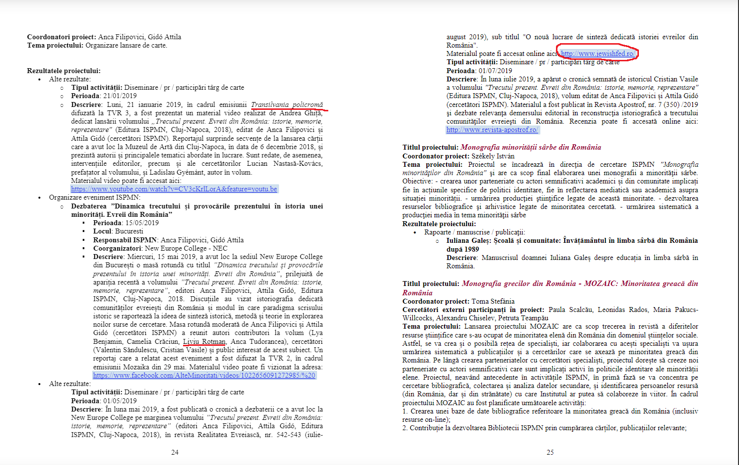 Raportul și cele câteva proiecte expuse aici sunt o mostră infimă, pe site fiind urcate multe rapoarte similare, despre proiectele derulate de când există institutul. Unele au dispărut, probabil există pe undeva. Cele ce rămân sunt dovezi în sine care evidențiază natura perfidă a institutului.