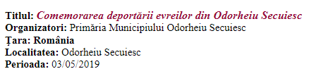2-3 June 2016 – Identitate etnică şi violenţă antisemită în memorialistica evreiască [Ethnic Identity and Anti-Semitic Violence in Jewish Memoires] – National Conference of the Historical Anthropology Seminar “Violence, Society and Modernization in Romanian Space (16-20 Century). The Great War, the End of the Modernity?”, Babeş-Bolyai University, Cluj-Napoca.