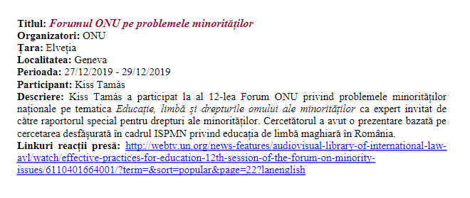 to organize and carry out documentation visits and experience sharings both abroad and in Romania in order to become familiar with other citizenship rights protection systems of national minorities.