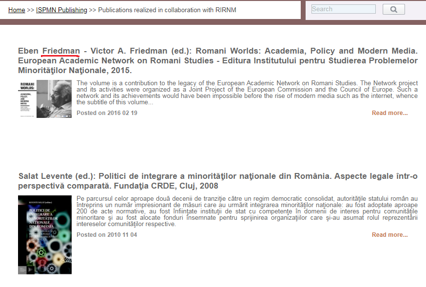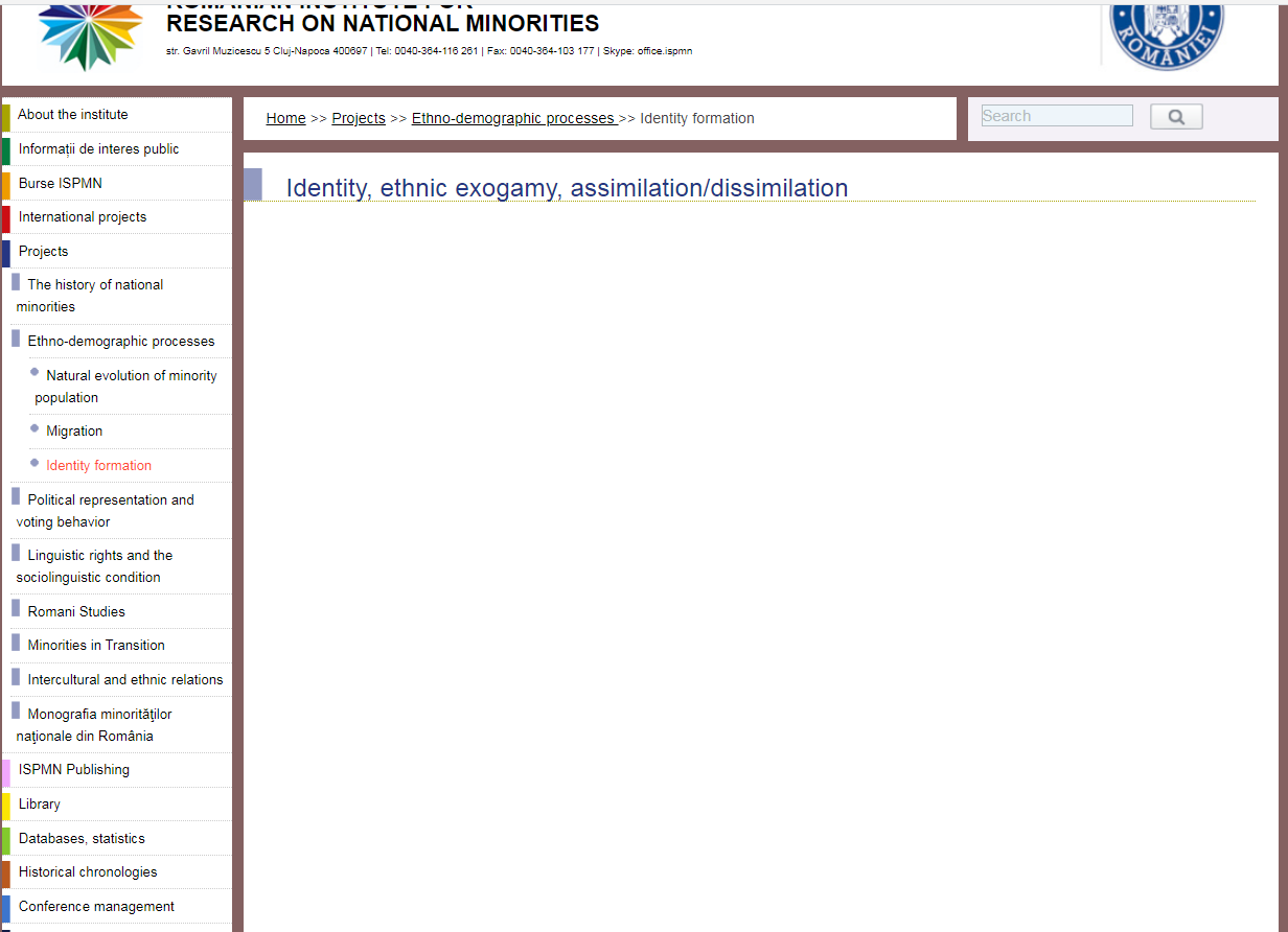 Based in Cluj-Napoca, the ROMANIAN INSTITUTE FOR RESEARCH ON NATIONAL MINORITIES is a legally constituted public entity under the authority of the Romanian Government and coordinated by the Department for Interethnic Relations.