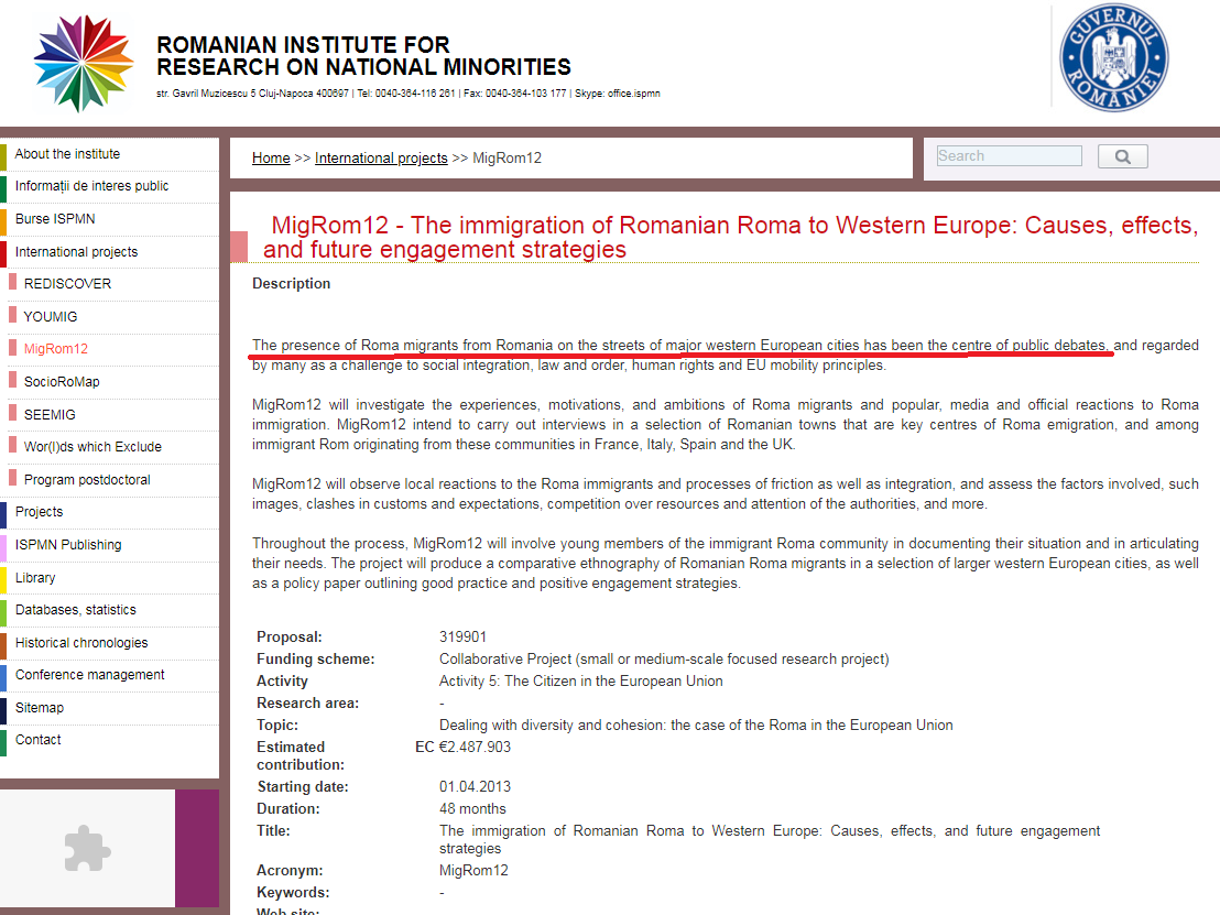 De exemplu au un studiu despre imigrația țiganilor spre vestul Europei. “Cauze, efecte și strategii viitoare” zice în titlu.