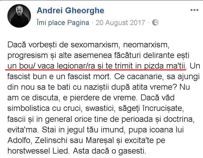 Un individ care de la înălțimea presupusei inteligențe nu îi era permis să promoveze tâmpeniile occidentaliste cu atâta înverșunare și să lovească furibund în istorie și în naționalism.