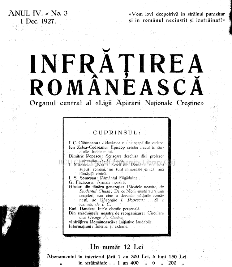 Vă prezentăm o colecție de reviste interbelice, dintre care subliniem Înfrățirea Românească, revista Ligii Apărării Național-Creștine.