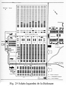 Conform acestui raport, un convoi de patru sau cinci mii de jidani din Theresienstadt, călătorind în familie, ar fi ajuns la Birkenau în septembrie 1943. Aceşti jidani şi-au păstrat bagajele şi au fost cazaţi pe familii în sectorul de lagăr indicat de ilustraţia n° 29 [cf. Fig. 29 Schiţa lagărului de la Birkenau – n.n., V.I.Z.]. Au fost autorizaţi să poarte corespondenţă în mod liber, s-a deschis o şcoală pentru copii, iar bărbaţii nu au fost siliţi să muncească. Toţi au fost consideraţi ca fiind în carantină pentru şase luni. Ni se spune că la 7 martie 1944 ar fi fost gazaţi cu toţii, iar „tinerii au mers la moarte cântând“.