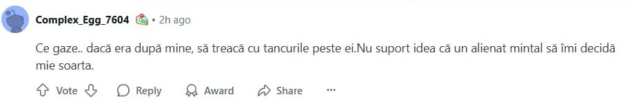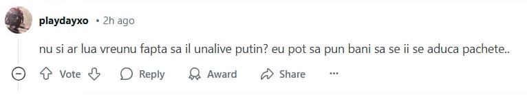 Trebuie gasite comentariile instigatoare la violenta fizica si la asasinat si facuta plangere penala, adresata Politiei Romane. De asemenea si sesizare la CNA contra site-lui, ca nu aplica autocenzura. Aceste sesizari trebuie sa nu fie anonime. Va fi insa greu de investigst, reddit e platforma minora cu sediul in sua.