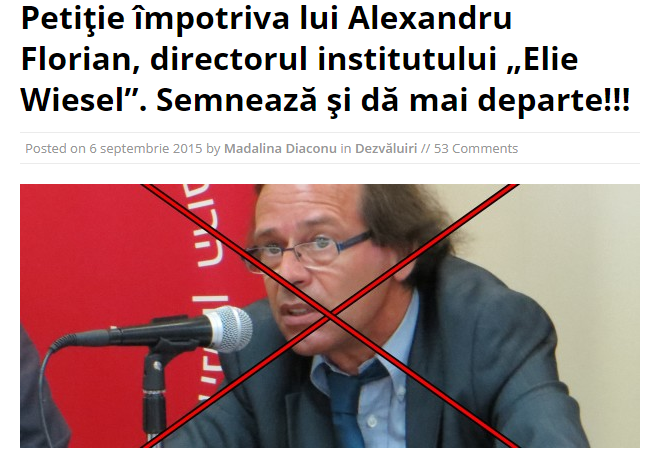 În urmă cu câteva luni, ActiveNews a scris un articol intitulat De ce trebuie demis Alexandru Florian, komisarul rasist, xenofob și antisemit de la Institutul „Elie Wiesel”