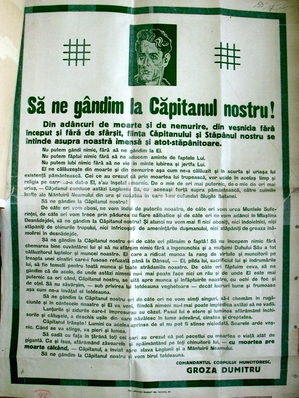 N.I.: Ieșiți din case! Luptați fără frică! Ce ar spune soldații căzuți in apărarea neamului să ne vadă așa? Ce ar spune Căpitanul Codreanu? Ce ar spune Mareșalul Antonescu? Gândiți-vă la ei când puneți mâna pe drapel. Gândiți-vă la ei când înaintați spre victorie! Multă sănatate și sărbători fericite!