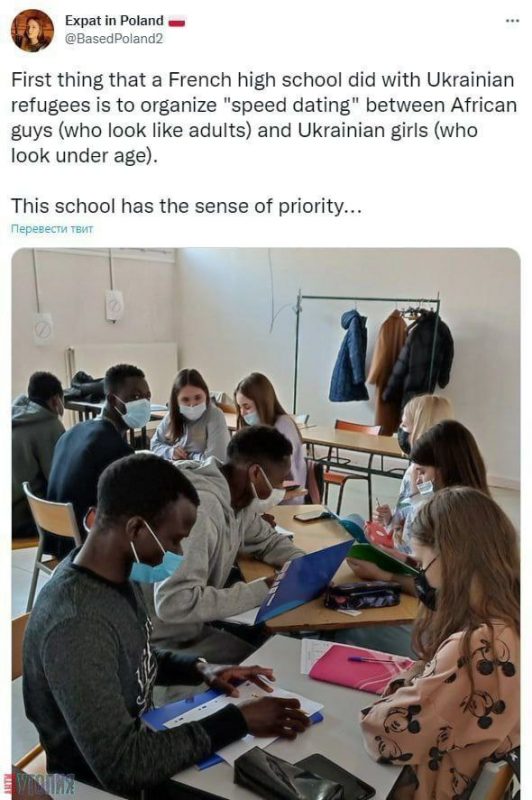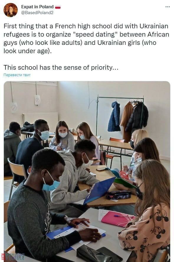 Primul lucru pe care l-a făcut un liceu francez cu refugiații din Ucraina a fost să organizeze “întîlniri rapide” între băieți africani (care par adulți în poza de mai sus) și fete ucrainene (care par minore).