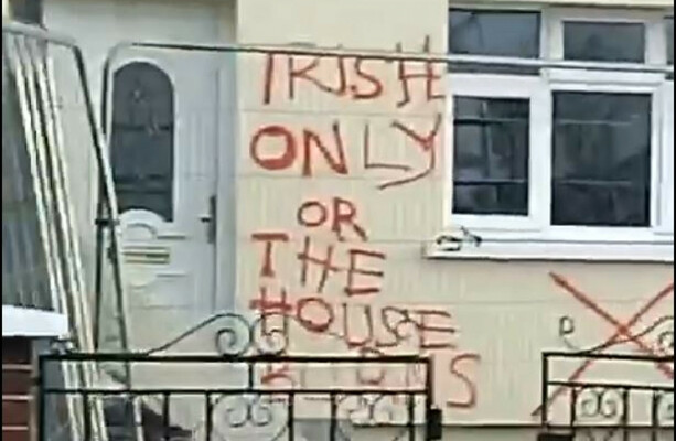 Anul trecut au avut loc mai multe tentative de a găzdui imigranți în case special amenajate, la inițiativa politicienilor globaliști. Cetățenii au lansat atunci un avertisment dur, marcând casele cu spray și cu mesajul “Doar irlandezi sau casa arde.”