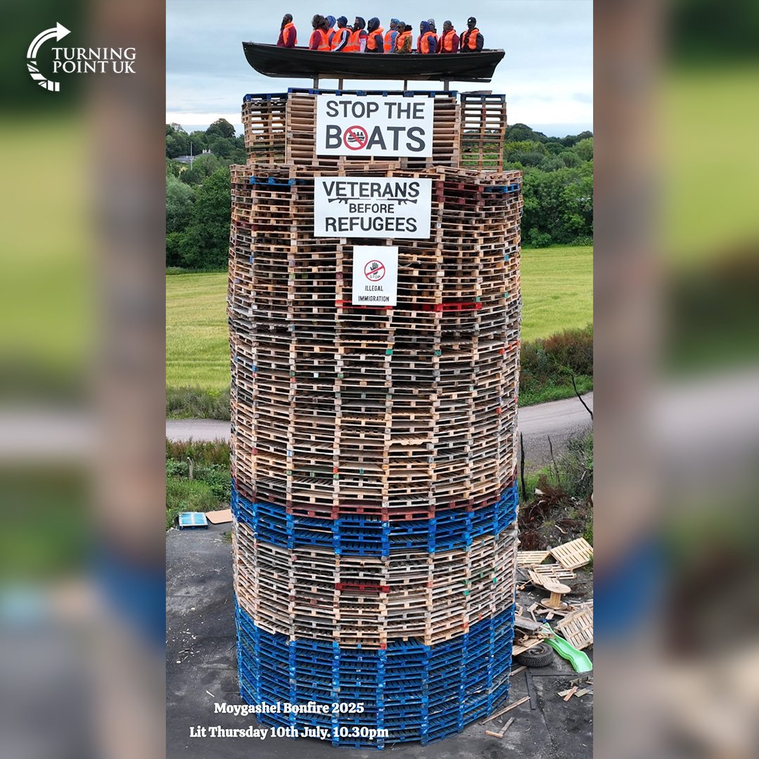 Irlandezii din Irlanda de Nord au construit un foc de tabără imens, o efigie simbolică a imigrației non-europene, căreia astăzi plănuiesc să-i dea foc. Au instalat inclusiv o barcă cu imigranți chiar în vârf, iar mesajele de pe bannere sunt “Opriți bărcile!” și “Veterani înaintea refugiaților!”