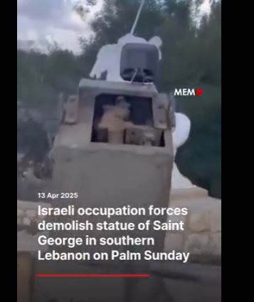 Israeli occupation forces demolish statue of Saint George in southern Lebanon on Palm Sunday