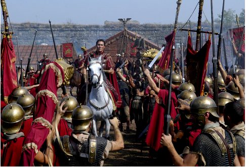 La vremea lui, cu ajutorul numeroșilor aderenți din rândul plebeilor, consulul roman Cezar a răsturnat regimul mafiot republican, condus de un Senat corupt și discreditat care, în frunte cu Pompei, a șters-o prin părțile Greciei.
