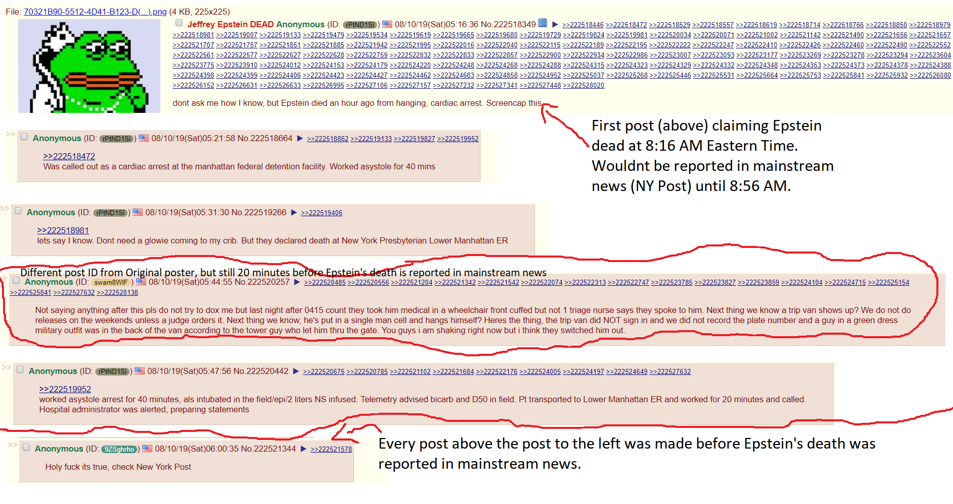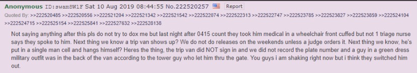 Informații despre moartea sa au apărut înaintea știrilor din presă prin câteva postări anonime pe 4chan, un grup independent de investigații.