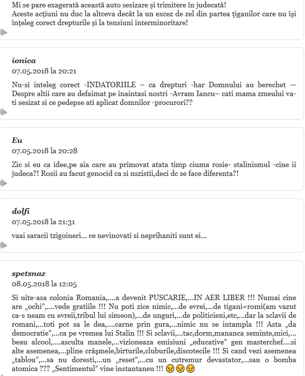 *Inculpatul a mai publicat materiale defăimătoare la adresa romilor prin acre(sic!) susținea exterminarea acestora.